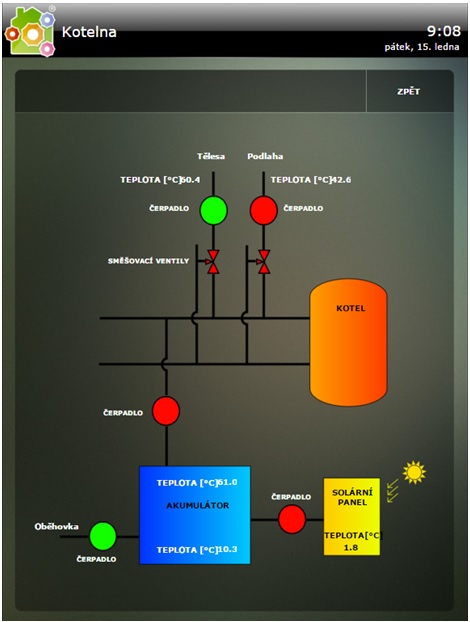 - kompletní systém měření a regulace (řízení kotelny s kondenzačním kotlem)