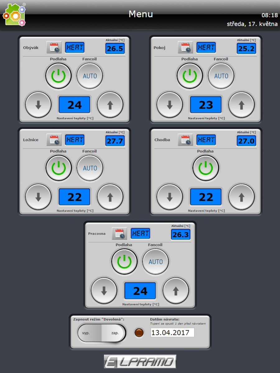 - Předělání starého řídicího systému složeného z mnoha samostatných ovladačů a termostatů. Nyní vše řídí jedna centální jednotka a všechny technologie pro vytápění spolu komunikují.